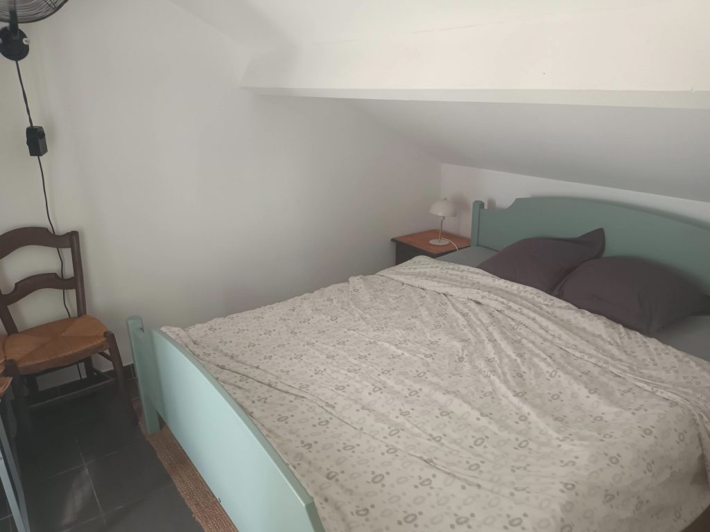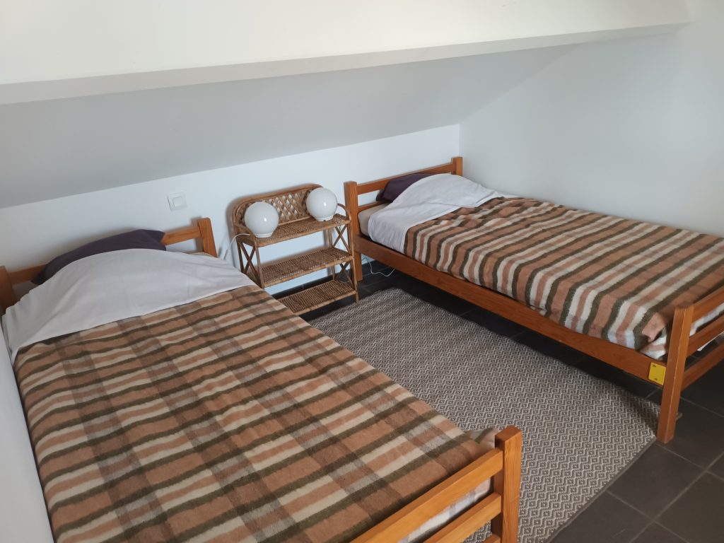 Au premier étage, il y a deux petites chambres. Elles ont une porte entre elles. Une chambre a un double-lit à 160 x 200cm, l’autre a deux lits séparés. Au sol, il y a quelques tapis ,et au mur un petit miroir ancien.
